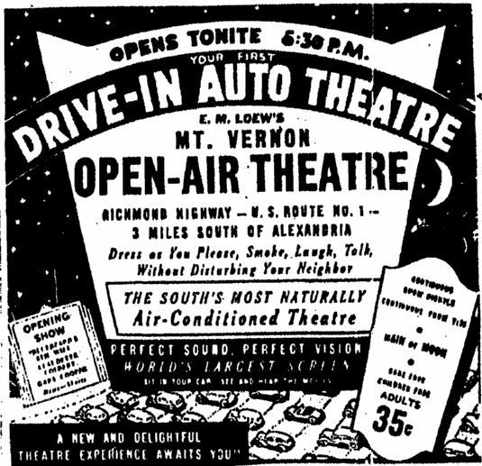 The Mt. Vernon Drive-In theatre once stood where Costco is in Hybla Valley. (Courtesy of Rivest666)